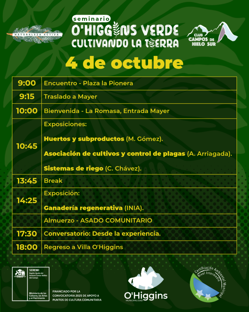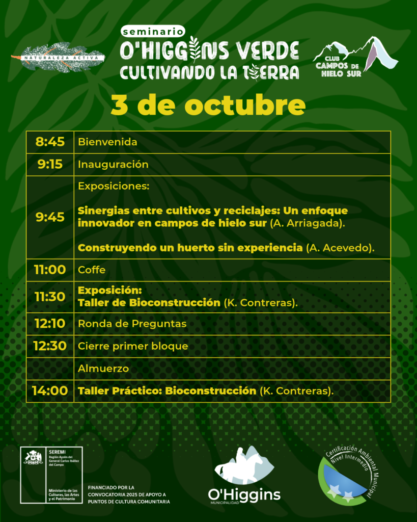 ¡Te invitamos a participar en el Seminario “O’Higgins Verde: Cultivando la Tierra”! Una gran oportunidad para conectar con la tierra y aprender a cuidarla.