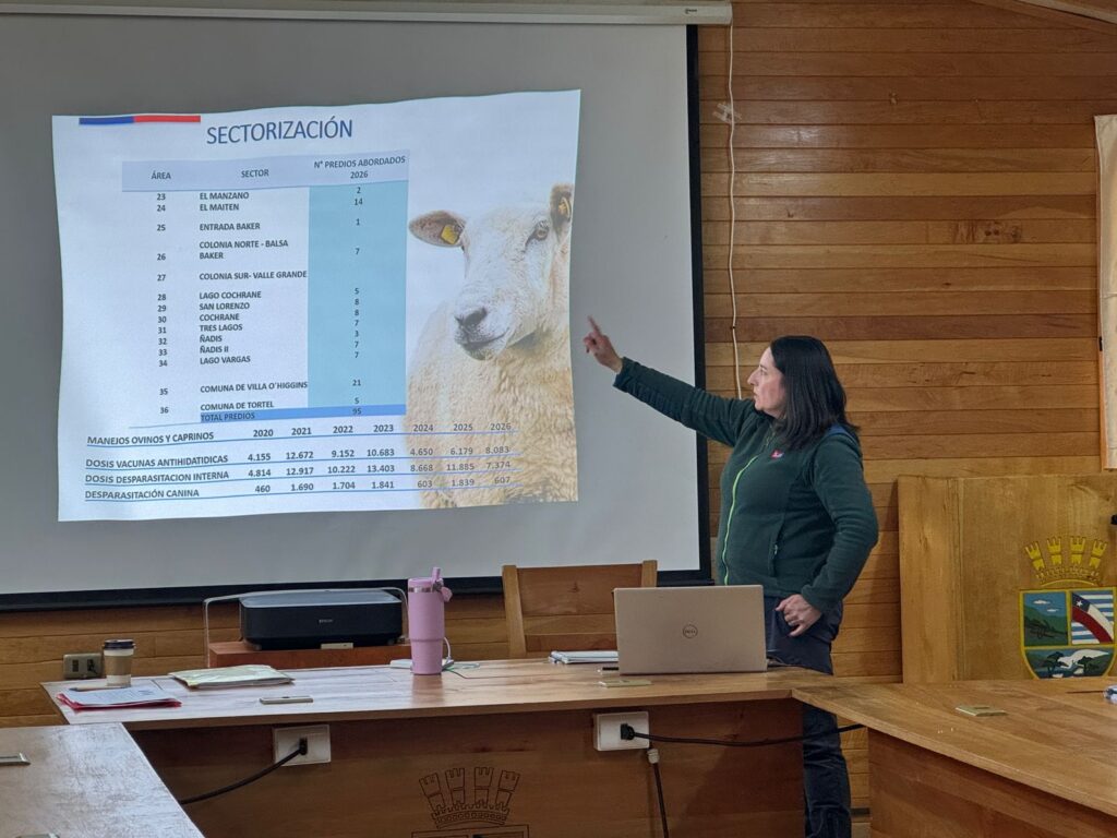 Avances en Villa O’Higgins Felicia Gatica, funcionaria del SAG en la comuna, expuso los avances del programa durante el presente año. A nivel regional, la vacunación antihidatídica ha mostrado un crecimiento sostenido, pasando de 4.650 dosis en 2024 a 8.083 en lo que va del 2026. En Villa O’Higgins, actualmente se están interviniendo 21 predios con planes de vacunación y desparasitación ovina.